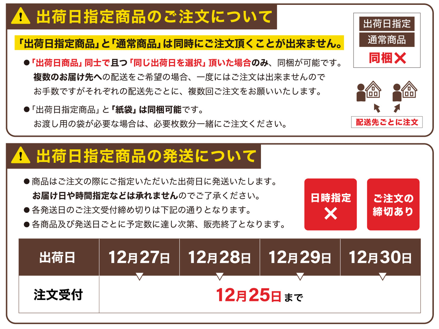 - 各出荷日とも12月25日がご注文受付の締め切りとなります。